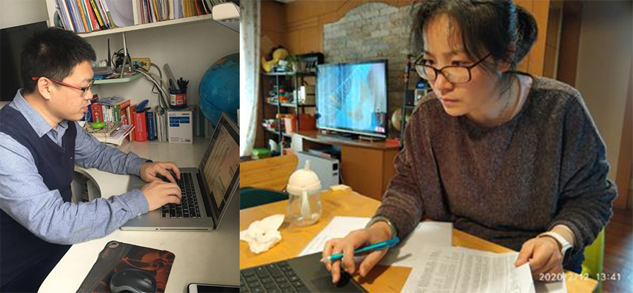 备课中的杨雪霞老师和郭睿老师